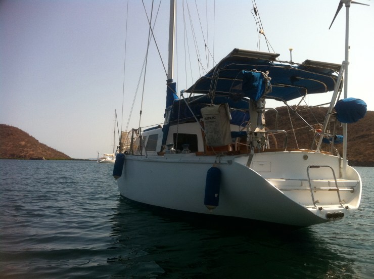 So with that we all agreed we had to go see the Cal 35′ in Puerto Escandito. The port is a tiny little place about 3.5 hours north of where we are staying in La Paz, and it is what they call a “hurricane hidey hole” because it is protected this time of year. It was just stunning! Our boat brokers, Shelly and Mike offered to drive us up there to look at the boat with the man who was caring for it during the off season, Ray. For me, it was one of those times you really just know – this is it. This is the place we will spend the next undetermined amount of time living. The stunning view didn’t hurt either!