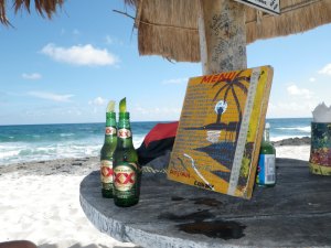 We wandered off the boat and found ourselves renting a little scooter that we took halfway around the little island of Cozumel that was crawling with tourists. We stopped off at some Mayan ruins and a great hole-on-the-beach restaurant on the way.