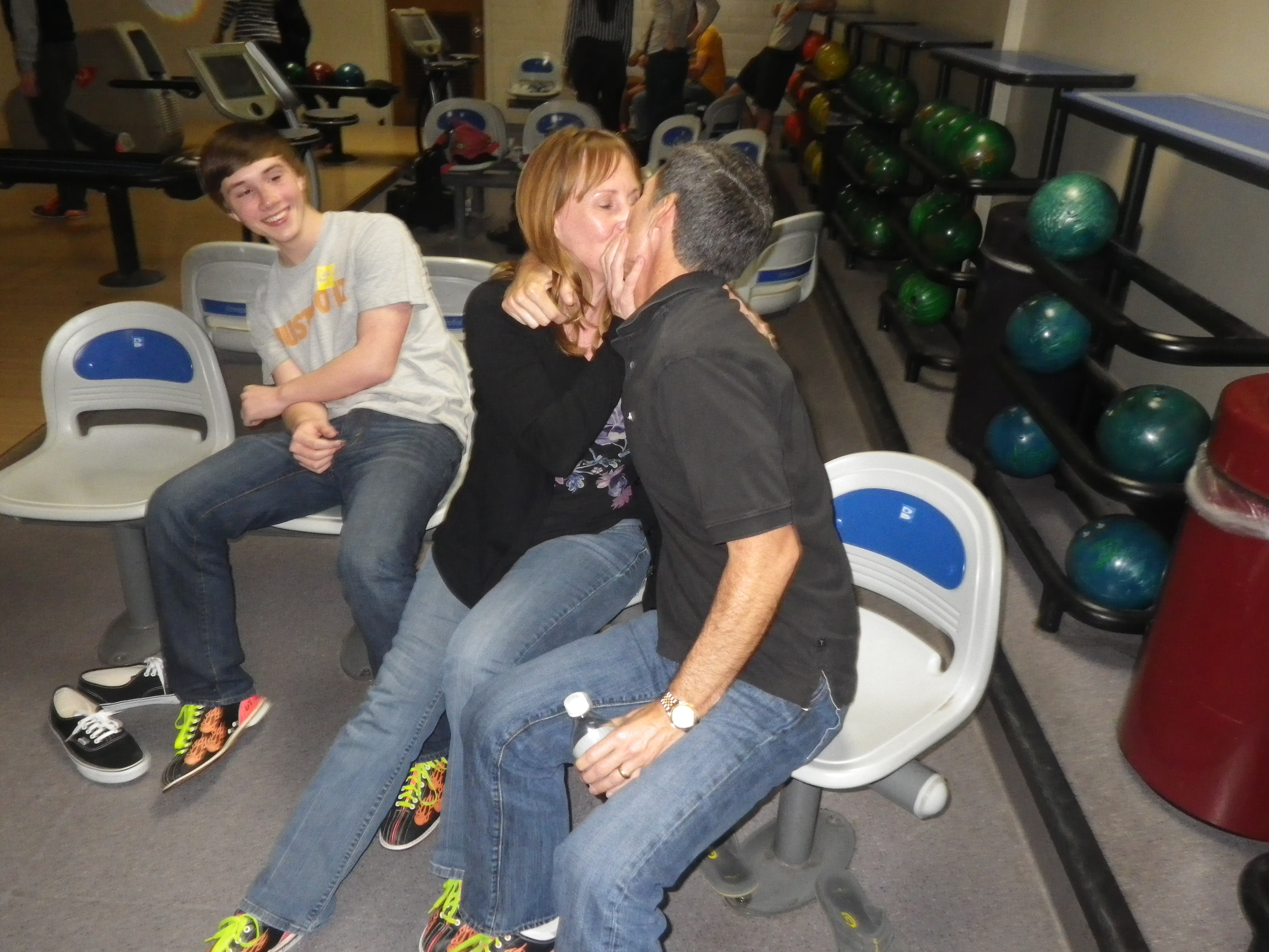 Uncle Mark won and got a sweet victory kiss. Of course, their son Mason thinks that's gross.