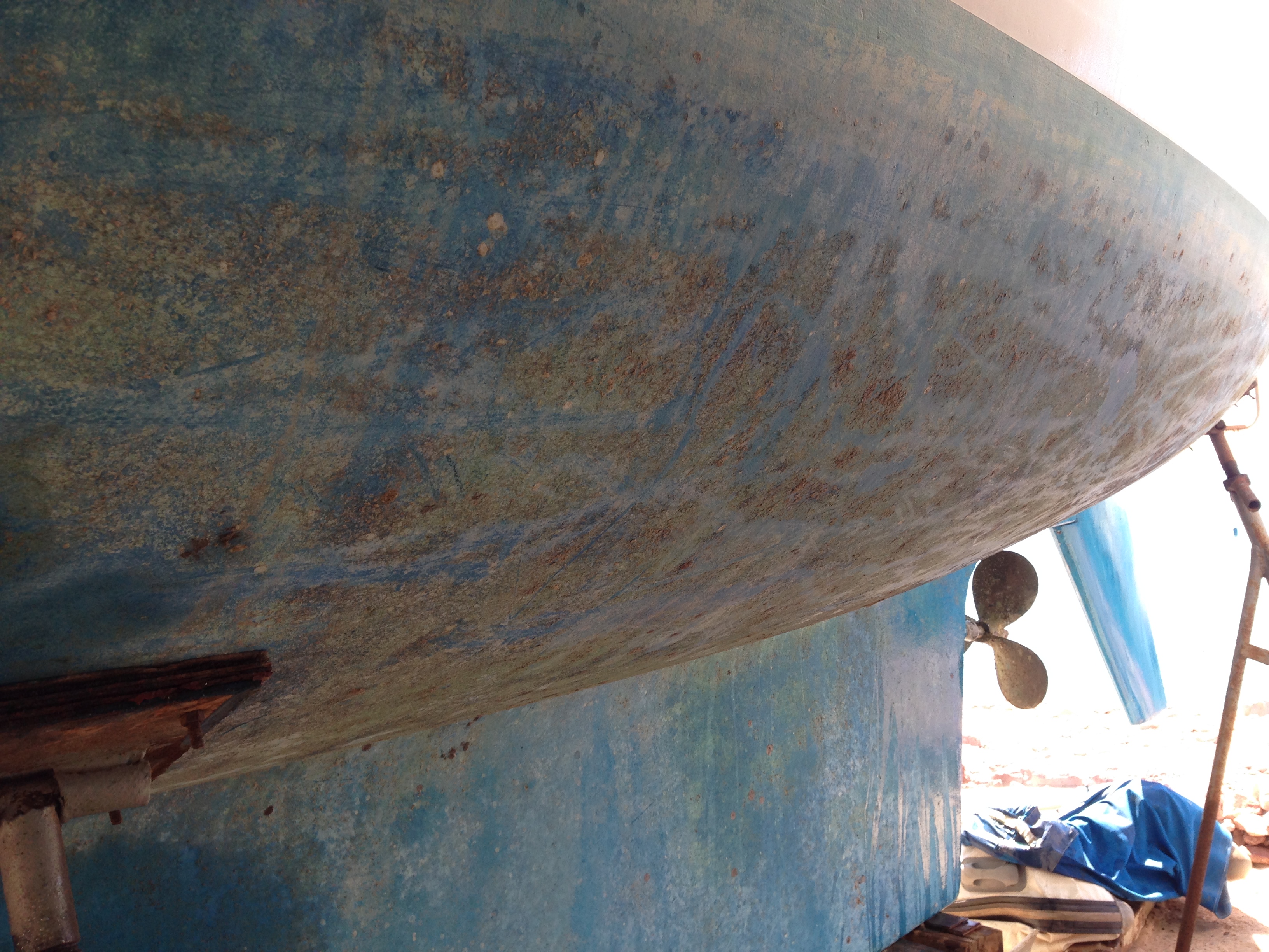 Day 4) Had the boat bottom inspected by a local boat surveyor, Cecil – who did our boat inspection before we bought 2 years ago. He was a boat builder most of his life and will be 89 soon. We bought one gallon of ablative anti-fouling paint nearby for about $180 usd and supplies for painting. We got advice to just do a light sanding on the existing paint, power wash again and paint. So we did.