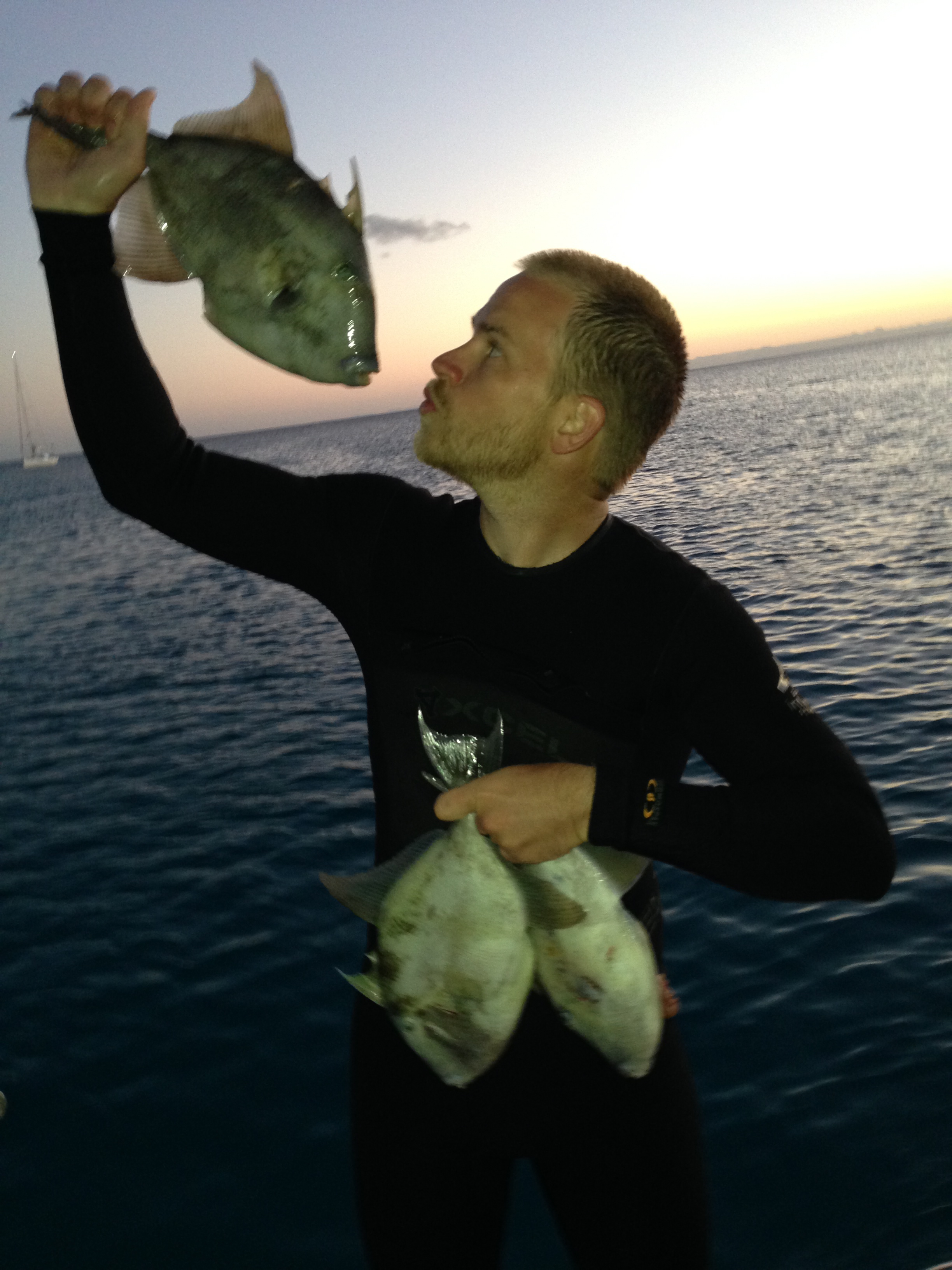 The next day offered winds from the west/southwest, allowing for us to have a wonderful sail up to one of my favorite islands — Isla San Francisco. This is one of the more picturesque places we have visited in the Sea of Cortez. The same night, our friends on s/v Calypso, Rick and Jasna, arrived just before sunset. We had planned to meet them there, but weren’t sure if the would make it. We enjoyed swimming, kayaking, spear fishing (Tim, Rick and Jasna) and hiking at the island for six days. Rick and Jasna had to deliver some school supplies to the small fishing village just to the north, San Evaristo, and we were looking to get away from the tons of mosquitos at Isla San Francisco, so we followed them upwind.